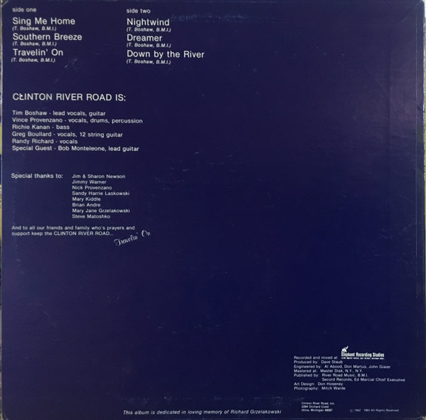 Le LP mini-album de six titres du CLINTON RIVER BAND, obscur quintette du Michigan, qui percute bien l'ouïe, a la particularité d'être très bien produit. En plus il est facilement trouvable à un prix raisonnable, ce qui n'est souvent pas le cas pour ce genre d'autoproduction. Mis en avant par leur chanteur-guitariste Tim Boshaw, compositeur de la totalité de l'album, la face A débute « laid-back » avec la ballade "Sin Me Home". Ensuite "Southern Breeze" et le titre-album "Travelin 'On" vont ravir les oreilles de ceux qui aiment le « Southern Country Rock » de groupes comme les Outlaws et le Henry Paul Band. Le guitariste Tim Boshaw et Bob Monteleone en invité y rivalisent de dextérité tout comme en Face B sur des titres comme "Nightwind" et "Dreamer" où l'on trouve l'influence de Poco et des Eagles, ainsi que du Marshall Tucker Band. "Down by River" avec de souple parties de slide guitare à couper le souffle assure la conclusion de ce court LP. Le Clinton River Band a aussi sorti en 1997 un CD contenant dix titres d'un « Country Rock » proche des Eagles, Poco, Firefall, New Riders Of The Purple Sage, avec de belles harmonies vocales. Tim Boshaw s'est distingué en 2023 par la parution d'un album CD "The Song Writer Demo Project", suivi actuellement d'un single avec son compère guitariste Bob Monteleone, avec le splendide titre "Jack Kerouac" célébrant l'écrivain de la « beat generation ».