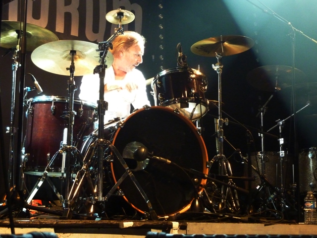 So, again a super good initiative to give to the crédit of the Forum's managers who renew for some years the good projects for the great pleasure of the rock enthusiasts ! Around 9 pm the lights switch off and we find again with a real pleasure on stage Monsieur John Coghlan (yeah... the former famous Status Quo's drummer !) and his band "John Coghlan's Quo". And what do you think those rascals can play, hey?.... Well « Caroline » as aperitif, followed by a good main course where we can find pell mell some « Paper Plane », « Roll Over Lay Down », « In My Chair », « Railroad », « Gerdundula », etc... and to finish, nothing less than the delicious « Rain » and « Down Down » as desserts. We could find us back in the middle of the 70's! Well… if we are more objective, we had to admit that the copy isn't really... on the level (!) of the original, but it doesn't matter... the John Coghlan deserves the fans' respect !