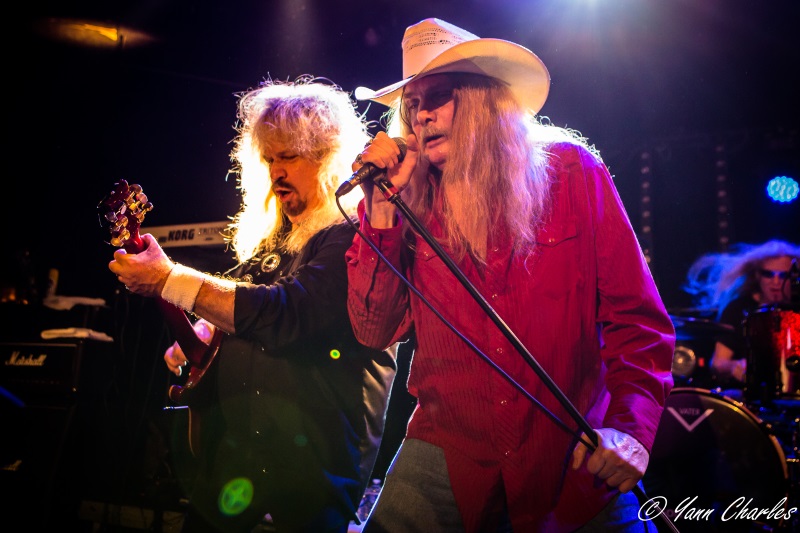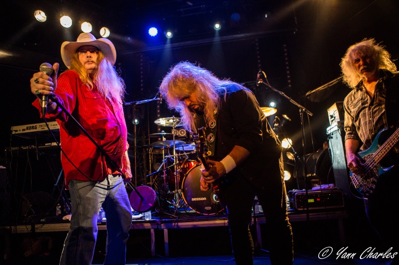 And we arrive at this evening in December 2017 for the return of Molly Hatchet at the Trabendo as part of a Christmas tour in Europe. The band does not have a new album to sell and these concerts are just the opportunity to reconnect with European fans. Dave Hlubek has left us recently and the band will honor him tonight, omitting to mention Banner Thomas, Bruce Crump, Duane Roland, DJB or even Riff West, all gone to the paradise (or hell) of Southern rockers! There is definitely only one guitarist in MH and we must admit that it is a little light on some songs like "Fall Of The Peacemakers", Molly’s "Free Bird" where the 2 or 3 guitars usually engaged in a merciless duel ... I don’t know if it's to hide this lack but the band plays tonight very loudly, much too loud and the walls of Trabendo shake and so our ears. Why push all the knobs to the max? It's just ridiculous and the sound of the concert will be ruined during all the evening, too bad! Why not use more of John's keyboards to compete with Bobby's guitar? Because frankly, this good Mr Galvin seems to be really bored and fulfills the job without much conviction. Shawn still has the fan at its maximum power next to his drums and this effect of spiky hair all around his head begins to feel rehashed and borders on the grotesque! As we arrive at the end of the tour, Phil McCormack does not have a so strong voice and it is sorely felt where he has to push his voice like "Flirtin 'With Disaster" or "Jukin' City"! It's finally on Bobby and Tim that the show is based. The guitarist smiles a little and seems aware that this formula with only a guitar quickly reaches its limits even if it makes a lot of effort to fill this gap… Tim, he is the happiest of all, he shakes his bass copiously and is willingly approaching Bobby to reproduce the traditional synchronized movements of guitars. In fact it is Phil who twice summarizes the concerns of Molly Hatchet today ... On the one hand by insisting heavily on the fact that John Galvin has been part of the group for over 30 years, just trying to convince the skeptics and grumpies that Molly Hatchet is not just a tribute band in 2017.On the other hand by introducing Bobby as the absolute leader of the band with great deference as if with a simple snap of his fingers all other current members could be fired! Well, let's be clear, the concert is not bad in itself, but we're expecting more from a band that filled the stadiums almost 40 years ago and played with the Nugent, Johnny Winter, Aerosmith, and so on.