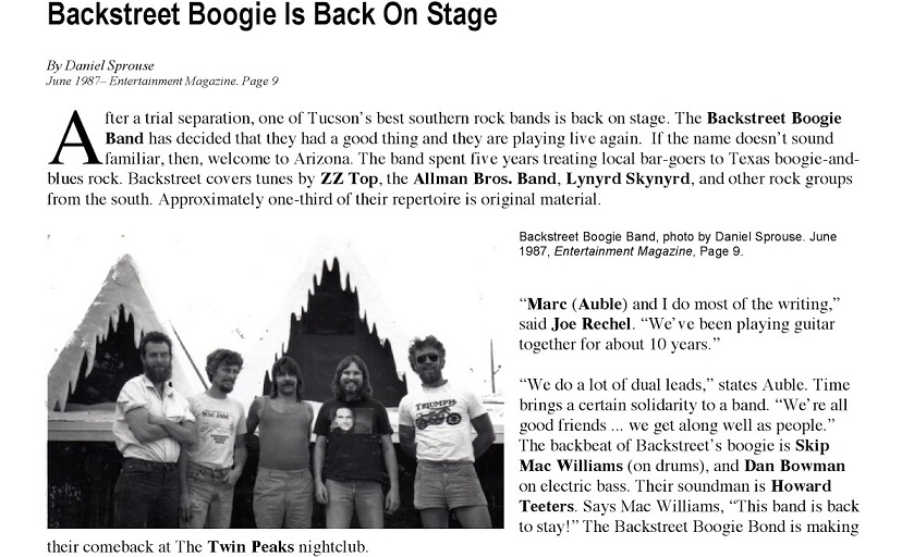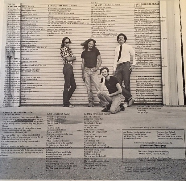 Originaire de Tucson Arizona, le Backstreet Boogie Band se présentait autrefois dans un schéma basse, batterie et deux guitares se tirant la bourre à qui mieux mieux, tenues par Joe Rechel & Marc Auble qui ont formé l'ossature du groupe pendant une décennie. Par contre, le Backstreet Boogie Band a plusieurs fois changé de rythmique. Ce Backstreet Boogie Band prospectant autant dans le Blues que dans le Southern Rock a écumé, pendant les mid-seventies jusqu'à leur séparation en 1987, l'Arizona et les états limitrophes à grands coups de reprises puisées dans le répertoire de ZZTop, Lynyrd Skynyrd, Allman Bros, égayées de leur propre compos qui sont fortes aguicheuses pour l’ouïe. On les retrouve au nombre de neuf sur leur seul album vinyle paru en 1981, d'un nom qui parle: "Southbound Freight", recherché comme le Graal où ils combinent un Boogie très tonique influencé par le Rock Sudiste avec une identité sonore qui leur est propre où se déroulent moult soli de guitares, parfois en harmonie, comme démontré avec maîtrise sur "Please Louise" qui ouvre la face A. Ce Boogie s'étale sur cinq minutes bouillonnantes à souhait avec des variations hautes en couleur, surtout quand les deux bretteurs déclenchent l'harmonisation des guitares. Après ce torride Boogie, arrive "Your Piano", plus léger, plus aérien, avec de délectables « licks » country folk blues avant de repartir de plus belle d'une façon carabinée sur "They Stay & They Stay", avec des harmonisations à tomber qui rappellent le travail des guitares jumelles des fréres Pat et Billy Moss dans le "Stormin South" de Rebel Storm. Un rythme plus traînant se fait sentir sur "I've Got My Song" dans un style « laid-back » proche de J.J .Cale avec aussi une trame mélodique qui lorgne du coté Skynyrd. Tout ce qui fleure bon le Southern Rock se met en place sur le long "So Lonely", titre présent pour vos esgourdes sur YouTube https://www.youtube.com/watch?v=QTb0OStvT20, où les deux guitares se renvoient la balle avec persuasion, bigarré d'une touche Southern Country Rock proche du Marshall Tucker Band et Outlaws. La face B s'ouvre par "Fat Man". Du bon vieux Boogie-Rock bluesy qui sonne allégrement par la grâce d'une slide bien baveuse qui retentit méchamment tout du long et qui lui donne un attrait Allman Bros. Ensuite, un truc marrant sur le titre " Men With The Money", de par sa ressemblance au "Paris New York" issu du BBH75 de Jacques Higelin. La suite se conjugue en Southern Boogie avec le bien bâti "Baby It's Me" ainsi que le morceau choc de l'album : "Southbound Freight", titre album longitudinal qui démarre en trombe. Du rapidos ! Ça bastonne sévère au niveau des duels de guitares où tout y passe pour se tempérer en blues à la fin entre ZZ TOP et Johnny Winter époque Rick Derringer.
