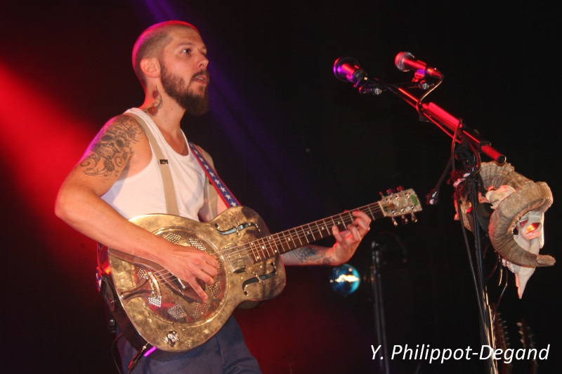 Sur la grande scène, le public a rendez-vous avec Vicious Steel, toujours en duo mais dans une formule différente : Antoine Delavaud a remplacé Tim Coiffet et il tient la batterie, ce qui donne une tout autre allure à la musique du groupe, mais sans rien renier de ses principes. Revendiquant le blues remuant de la ruralité mis à leur propre sauce, les deux compères ont vite fait de conquérir ceux qui ne les connaissaient pas encore, et je ne peux pas m'empêcher de trouver une certaine parenté entre cette formule et les Crazy Hambones qui ont sévi la veille. Ne me demandez pas pourquoi, c'est juste un feeling. D'ailleurs force est de reconnaître que, dans un genre différent, Cyril possède de redoutables qualités de « show-man ». Pour en savoir plus sur ce groupe détonnant, je vous conseille de lire la chronique parue dans nos colonnes, et de jeter une oreille plus qu'attentive à ce groupe gentiment décapant. Un bonheur…