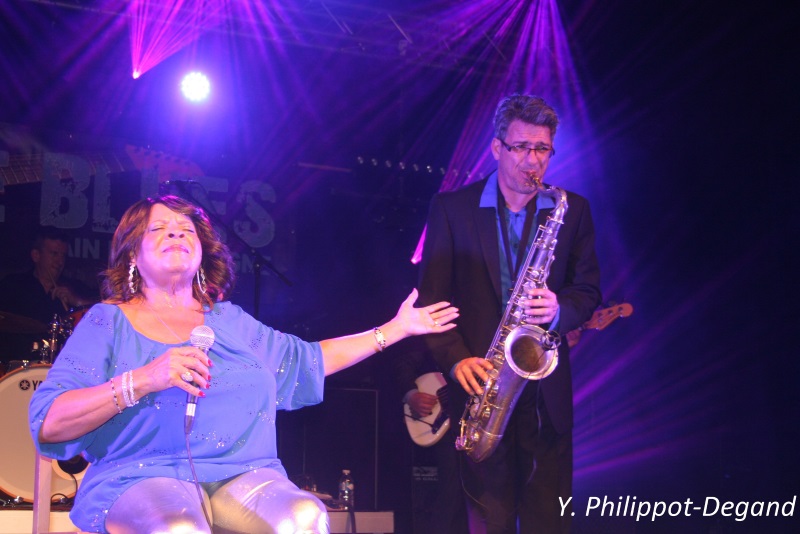 Le défi de haut vol lancé par la jeune génération représentée par JJ Thames aurait pu impressionner Sandra Hall soutenue par le pianiste Victor Puertas et l'excellent groupe French Blues Explosion, encore des Français de qualité. Mais Sandy en a vu d'autres dans sa longue carrière, et elle a tout mis pour défendre son statut. Là encore, nous avons eu droit à un moment étonnant d'énergie et de générosité. Après une intro très swing/rhythm'n'blues, Sandy s'est installée dans un swing lui aussi très teinté de couleurs soul avant de terminer en trombe sur du boogie et même sur du rock avec une version très « Ike & Tina Turner » du classique « Proud Mary » pendant laquelle elle a invité quelques jeunes du public à monter sur scène pour participer à la fête dans une ambiance assez extraordinaire.