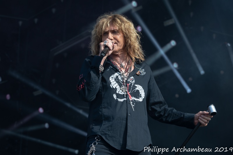 Contre toute attente, le concert de Whitesnake fut aussi une réussite. Leur précédent passage au Hellfest avait été quelque peu désastreux et on les attendait de pied ferme pour remettre les pendules à l'heure. Ce fut chose faite avec une set-liste solide et un groupe aux taquets même si Coverdale n'a définitivement plus de voix. Reb Beach et Joel Hoekstra font un travail fantastique aux guitares, Tommy Aldridge est toujours un batteur hors-pair et le reste du groupe assure bien. On n'échappe pas au solo de batterie néanmoins inutile pour un set d'une petite heure et à la démo guitaristique exubérante de Joel pour permettre à David d'aller reposer backstage ses cordes vocales usées... Mais des titres comme « Slide It In », « Slow an' Easy », « Give Me All Your Love » ou le zeppelinien « Still Of The Night » ont tôt fait de nous rassurer sur la bonne santé de la formation actuelle du Serpent Blanc. Et puis il y a les quelques extraits de l'excellent nouvel album « Flesh And Blood » sans compter les incontournables « Is This Love » et « Love Ain't No Stranger » chers à nos cœurs ! Si on arrive à faire abstraction des petits couinements qui sortent parfois difficilement de la gorge du beau David, Whitesnake reste une valeur sûre du hard rock qu'on espère revoir encore longtemps...