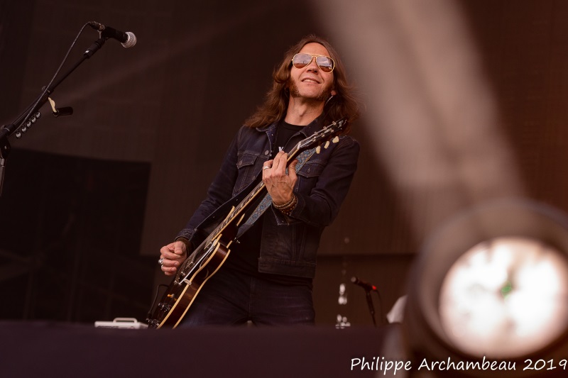 Le samedi repart sur les chapeaux de roue pour moi avec le très bon Richie Kotzen que j'avais perdu de vue depuis de nombreuses années. Bien loin de l'extravagance du Poison des années 90, de la technique à outrance du Mr Big des années 2000 ou même de l'énergie de son groupe plus récent The Winery Dogs, Richie propose un excellent blues-rock qui flirte avec le hard-rock voire la soul à la manière d'un Rory Gallagher ou d'un Gary Moore. Les compos sont solides et plutôt accrocheuses, idéal pour ce début d'après-midi ensoleillé à Clisson.