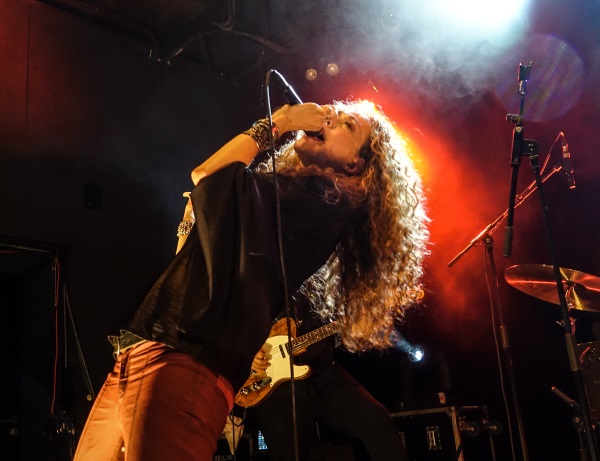 Changement de salle donc pour découvrir Dana Fuchs et son groupe. On retrouve à ses côtés son guitariste de longue date Jon Diamond, son claviériste Nicola Venturini, son fidèle bassiste Walter Latupeirissa et Piero Perelli derrière les fûts. Pas de set-liste préétablie pour le concert car Dana suit son instinct et demande parfois ce que le public a envie qu'elle interprète. Cela rend le concert beaucoup plus humain et spontané mais entraîne parfois quelques difficultés pour les musiciens pour prendre le train en marche. On peut supposer que ces quelques ajustements se feront pour la suite de la tournée car elle ne fait que commencer... Ce qui frappe chez Dana c'est son charisme naturel et sa propension à communiquer avec le public sur des sujets souvent très intimes. Elle nous parlera ainsi de son père mais aussi de sa mère et du décès de ses géniteurs ainsi que de deux de ses frères et de sa sœur sur la période récente. Quelques allusions aussi au monde actuel et à l'importance de privilégier l'amour à la haine... Ce n'est d'ailleurs pas une surprise si son dernier album s'intitule « Love Lives On ». C'est donc tout naturellement par celui-ci que Dana entame le concert avec les magnifiques « Ready To Rise », « Callin' Angels » dédié à ses proches disparus et « Sittin' On » qui rappelle l'importance de positiver face à l'adversité. Toujours issu du récent opus, petite reprise fort sympathique d'Otis Redding avec « Nobody's Fault But Mine » qui permet à Dana de montrer l'étendue de ses talents vocaux pas si éloignés d'une Janis Joplin ou d'une Beth Hart. Avec « Faithful Sinner », c'est à son père que la chanteuse américaine s'adresse pour un hommage très soul et bourré d'émotion. Retour au groove avec le funky « Sad Solution » qui est pour moi un des meilleurs morceaux du nouvel album. Dommage que les vents (sax et trompette) n'aient pas fait le voyage jusqu'à nous car ils apportent un vrai plus sur ce titre. On reste dans le groove avec une reprise de Gil Scott-Heron, l'excellent « Home Is Where The Hatred Is » dans une superbe version toute en finesse ! On enchaîne avec le très commercial « Sedative » avant la requête d'un des membres du public, le magnifique « Misery », une ballade très nostalgique que Dana nous présente comme sa première chanson d'amour qu'elle avait écrite à la demande de sa mère qui trouvait qu'elle écrivait des textes trop sombres ! Retour ensuite à l'album « Bliss Avenue » de 2013 avec « Long Long Game » et ses influences rock sudiste... Petite surprise avant de quitter la scène avec une reprise de Queen, « Under Pressure », souvent jouée par David Bowie sur scène, dans une version très proche de l'originale pour le plus grand plaisir du public. Dana Fuchs reviendra et empoignera une guitare acoustique pour un « Ring Of Fire » de derrière les fagots, hommage à Johnny Cash que son père adorait... Très belle interprétation de ce classique de la country en guise de cadeau d'adieu au public de Massy ! On espère que c'est plutôt un « au revoir » car on espère bien revoir Dana très prochainement !