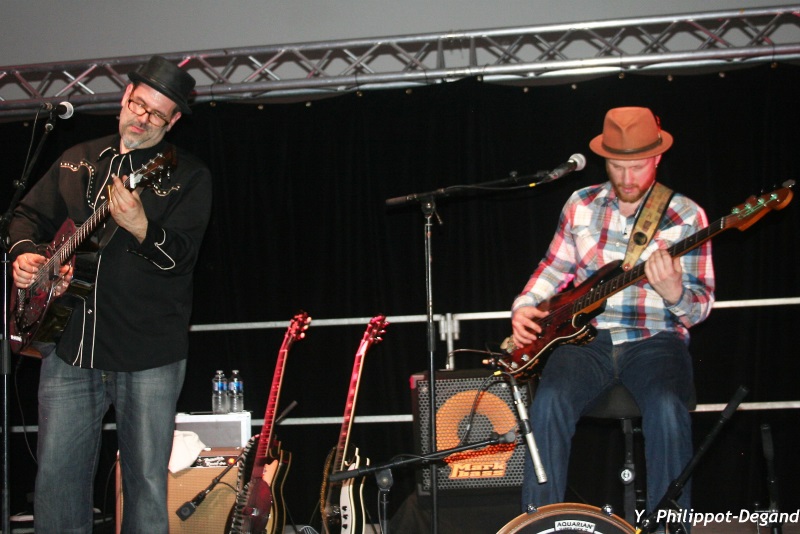 La course éperdue continue car il ne faut sous aucun prétexte rater l'ouverture de la deuxième soirée, qui démarre avec par le trio rouennais Loscar Combo. Charles Ducroux (voix et guitare), Pascal Lob Hernandez (contrebasse) et Fred Foucard (batterie) vont traverser avec une allégresse communicative plusieurs courants musicaux au cours de la soirée mêlant pas mal de Johnny Cash avec des influences plus rock comme Chuck Berry ou… Alain Bashung, joliment interprété. Les inter-scènes de Bain de Blues confirment cette année encore leur remarquable niveau.