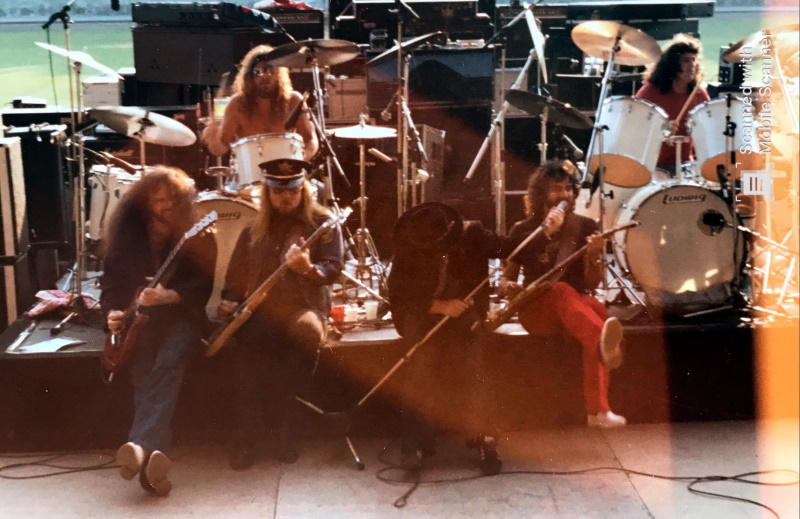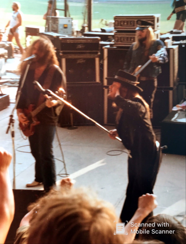 J étais arrivé la veille pour voir si par hasard on pouvait croiser 38 Special ou Blackfoot, malheureusement non mais on a vu quand même la section rythmique de Rose Tattoo. Le jour J devant les grilles du stade, ce qui m a frappé, c est le nombre de fans de southern rock présents.Comment ne pas être impatient de voir 38 Special et Blackfoot à leur top à ce moment là et pour la première et dernière fois pour 38 Special en Europe. Pour patienter la foule entame un Flirting Wwith Disaster, je me suis alors dit, putain ça s’annonce bien, car le premier groupe 38 Special met le feu. Le set débute sur un Turn it On de folie. Tout est au top avec Donnie Van Zant en show man qui sait se mettre le public dans la poche et se dépense sans compter, les deux gratteux sont terribles, idem pour les batteurs et les choristes, Le bassiste un peu en retrait assure, un grand moment de rock sudiste. Le public est chaud voir très chaud. Ensuite on nous annonce que Blackfoot ne jouera pas, son matériel ayant été retenu en Douane en Allemagne, alors qu’on les voit derrière la scène. Le groupe est venu saluer sur scène et s’excusé, le matériel