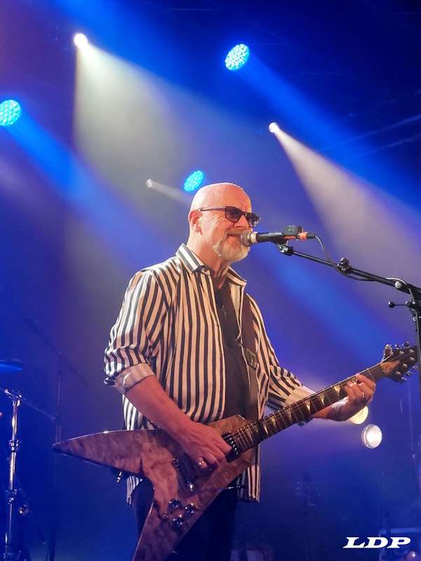 Après « Argus », le groupe va revisiter une partie de « Wishbone Four », qui se retrouve aussi quinquagénaire cette année. Cette fois est la bonne : Mark Abrahams peut remettre la lap-steeel sur le devant de la scène ! Andy nous parle d’un titre écrit au Texas pour introduire une remarquable version de « Rock’n’roll Widow » qui permet à Mark Abrahams de briller de mille feux avec des parties de lap-steel très proches de celles de l’enregistrement studio. Puisque la présentation des titres est visiblement son rôle exclusif, Andy nous évoque ensuite un titre festif pour faire se lever les verres qui lui rappelle les Fêtes de la Bière germaniques et entame « Ballad of the Beacon ». J’avoue que je n’avais jamais envisagé ainsi cette ballade ternaire et musclée en forme de valse qui reflète les inspirations folk du groupe… Là encore, Andy et Bob profitent des évolutions données aux morceaux et arrivent à éviter les pièges des parties vocales les plus aiguës -n’est pas Martin Turner qui veut- pour rendre une copie proche de la perfection.