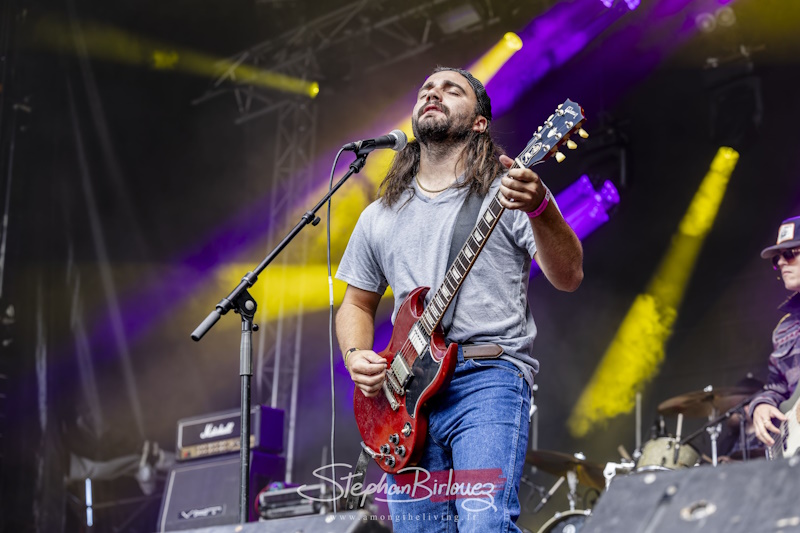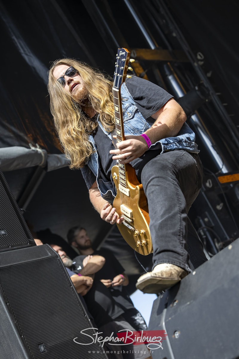 Les Américains de THE GEORGIA THUNDERBOLTS, qui naviguent également dans les eaux d’un rock estampillé 80’s, distillent un blues/rock perfusé à la country. THE GEORGIA THUNDERBOLTS puise ses racines dans une Amérique rurale aux accents sudistes. Le quintet fera son effet sur un public visiblement amateur du genre, et il faut bien dire que l’on a ici une formation parfaitement en place. TJ Lyle (chant) force le respect par sa voix mais également par une certaine tristesse propre au genre. Si l’ensemble du groupe est aguerri quant à la maîtrise de leurs instruments, Riley Couzzourt (guitare solo), remarquable par son jeu, est plutôt mis en avant. Même si les gus ne sont pas plus communicants que cela, le set sera aux petits oignons. À suivre de très très près. Ils auraient mérités d’être plus haut sur l’affiche.